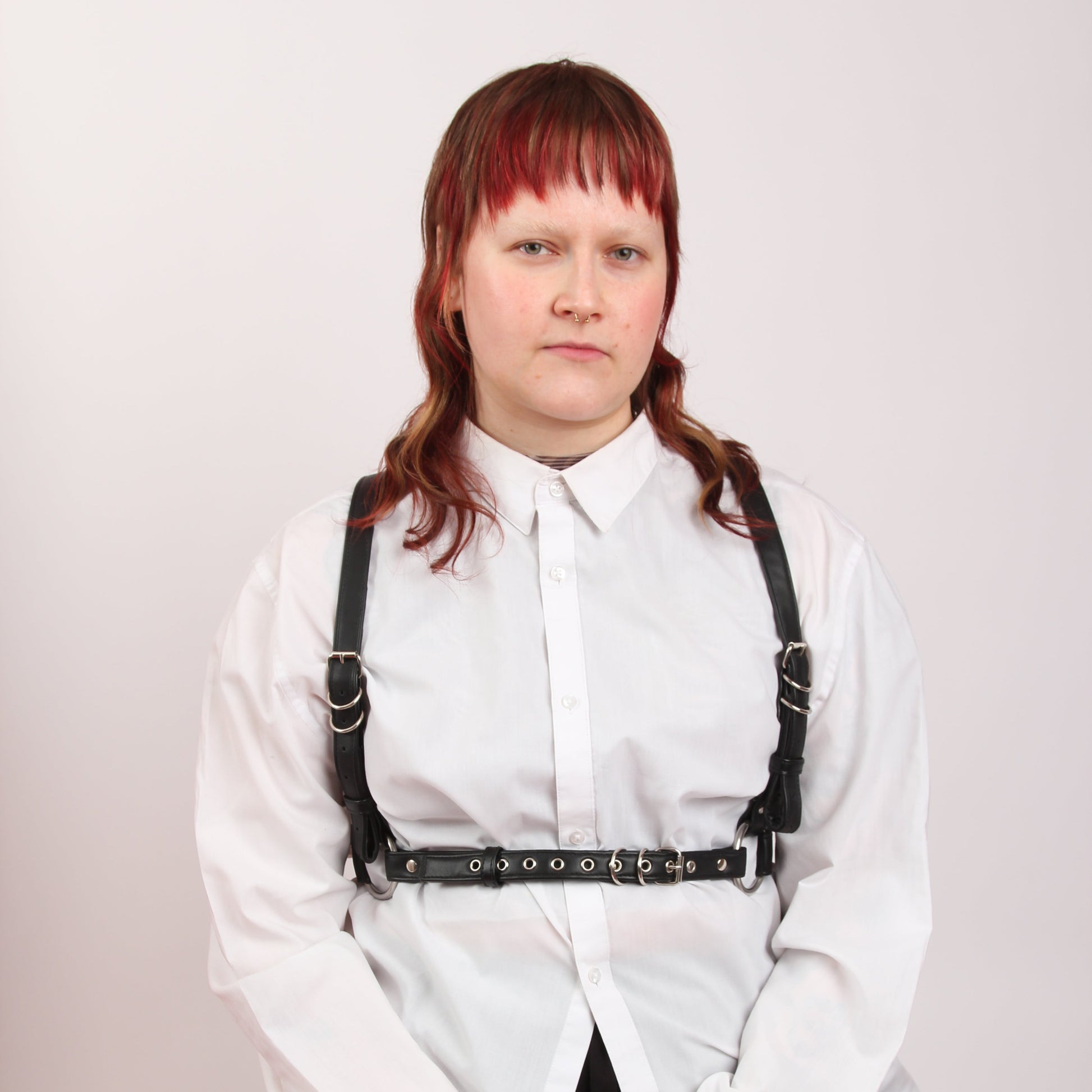 Crafted for comfort and statement-making, the Jūra Harness features a clean, adjustable fit with delicate shoulder straps and a bold front detail.