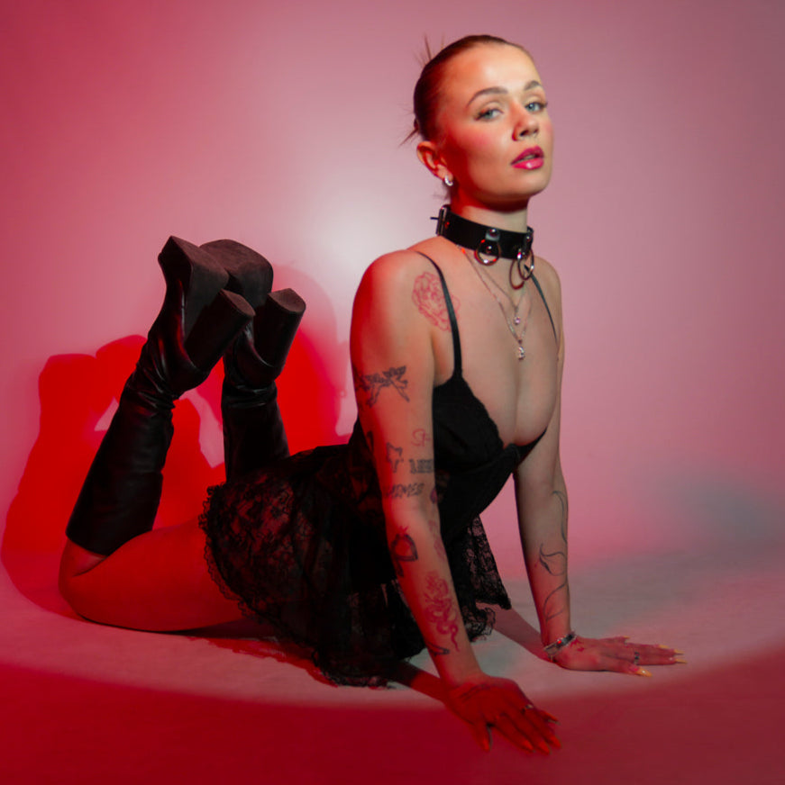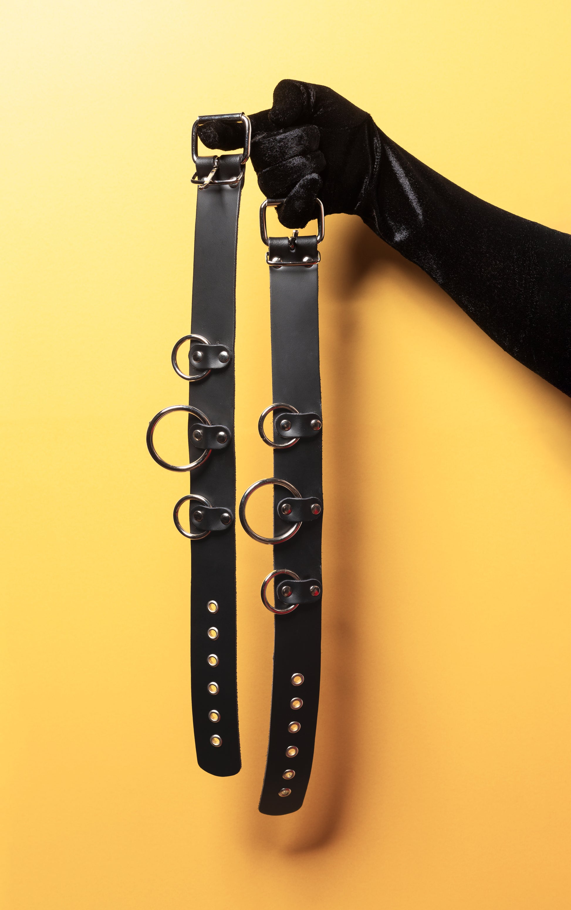 Made from genuine leather. High-quality Finnish craftsmanship. Features a buckle closure and three sturdy O-rings for attaching a leash or restraints.